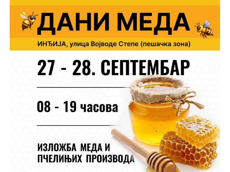 Danas i sutra u Inđiji održavaju se tradicionalni „Dani meda“, jubilarni 20. put. Organizator manifestacije je Udruženje pčelara „Roj“ iz Inđije, uz podršku opštine Inđija, i Pokrajinskog sekretarijat za poljoprivredu.